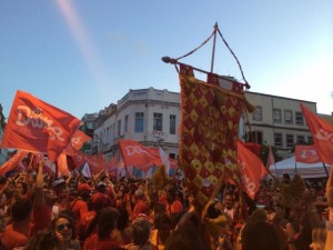 O ponto de encontro foi o Marco Zero. Para lá confluíam os grupos de pessoas que chegavam para uma manifestação de apoio à reeleição da Presidenta Dilma e de luta para transformar este país – cada vez mais na direção da justiça social e para fazer avançar a cidadania e a democracia.