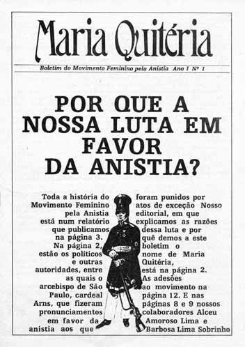 Para o movimento feminista contar essa história, fazendo, obviamente, uma crítica ao estado de exceção e policial de 21 anos de ditadura militar , é necessário reafirmar que as mulheres estiveram presentes nesta história como protagonista da ação política de resistência. E que 55 anos depois, ao recontar essa história, precisamos agregar o fato de que, na luta contra os valores fundamentalistas, nós mulheres também nos colocamos do lado da história que defendia um projeto societário com igualdade de gênero, e que sobretudo promovesse a autonomia e liberdade das mulheres em todas as dimensões da vida social.