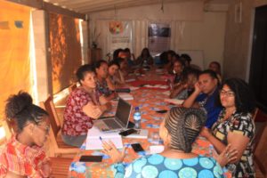 No dia posterior às atividades e manifestações da Marcha das Margaridas, o coletivo de mulheres da CONAQ se reuniu com Rosana Fernandes, assessora de projetos e formação da COORDENADORIA ECUMÊNICA DE SERVIÇO (CESE). A reunião teve como objetivo discutir questões relacionadas à mulher rural quilombola e deliberar o apoio da CESE à CONAQ para a realização do 2º encontro nacional de mulheres quilombolas que irá acontecer no próximo ano.