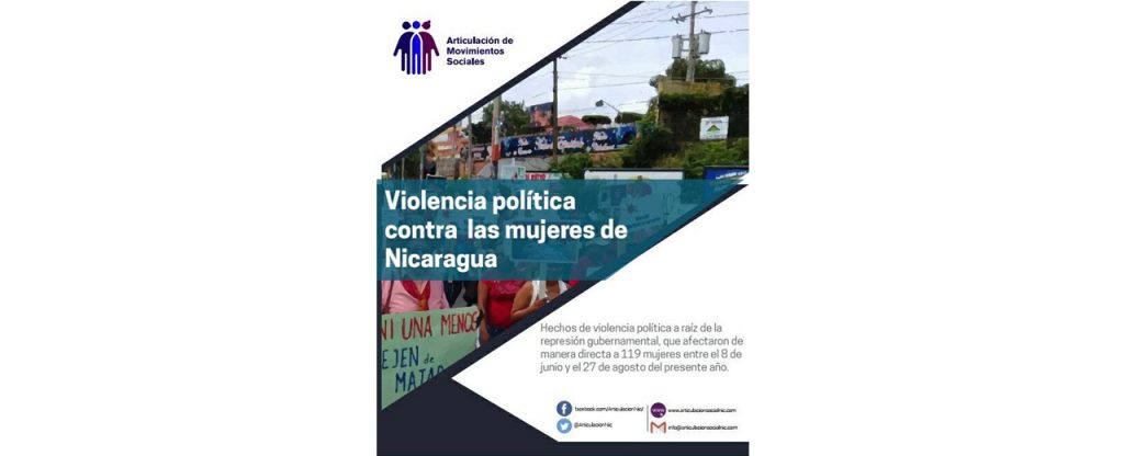 El Observatorio de Derechos Humanos de Nicaragua registra hechos de violencia política a raíz de la represión gubernamental, que afectaron de manera directa a 119 mujeres entre el 8 de junio y el 27 de agosto del presente año.