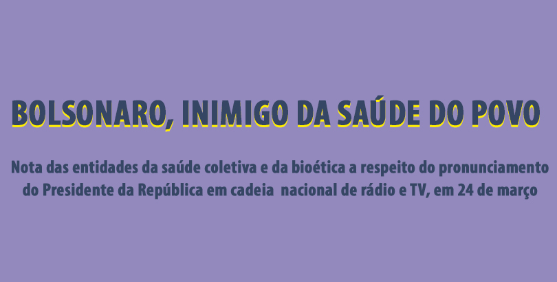 As entidades de saúde coletiva e da bioética consideram intolerável e irresponsável o “discurso da morte” feito pelo Presidente da República, na noite de 24 de março, em cadeia nacional de rádio e TV.