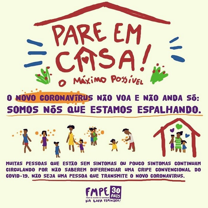 Em Recife, o Fórum de Mulheres de Pernambuco (FMPE) criou sua rede de solidariedade logo nos primeiros dias de agravamento da pandemia, quando grande parte de suas militantes começaram a ficar desprotegidas diante da insegurança social e financeira. “A rede surgiu porque se percebeu que durante a pandemia, todas que já viviam em um estado de vulnerabilidade social estariam ainda mais expostas. Muitas das mulheres do FMPE também estão desempregadas, são trabalhadoras do comércio informal, são trabalhadoras domésticas, diaristas e que em sua grande maioria, são as chefes de suas famílias. Então a rede de solidariedade surge da necessidade de nos manter bem, saudáveis e em condições de seguir lutando, além de enfrentar esse momento difícil da pandemia”, contou Heloína.