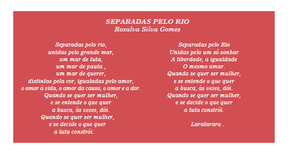 Ontem foi o último dia do curso FONTES E VEREDAS Feminismo Gerando ondas e contamos com uma contribuição artística da companheira Cléa Santos. Compartilhamos a música e letra aqui com todas.