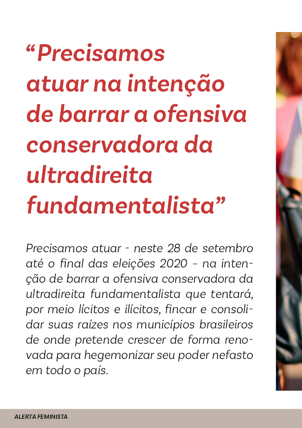 Precisamos atuar – neste 28 de setembro até o final das eleições 2020 – na intenção de barrar a ofensiva conservadora da ultradireita fundamentalista que tentará, por meio lícitos e ilícitos, fincar e consolidar suas raízes nos municípios brasileiros de onde pretende crescer de forma renovada para hegemonizar seu poder nefasto em todo o país.