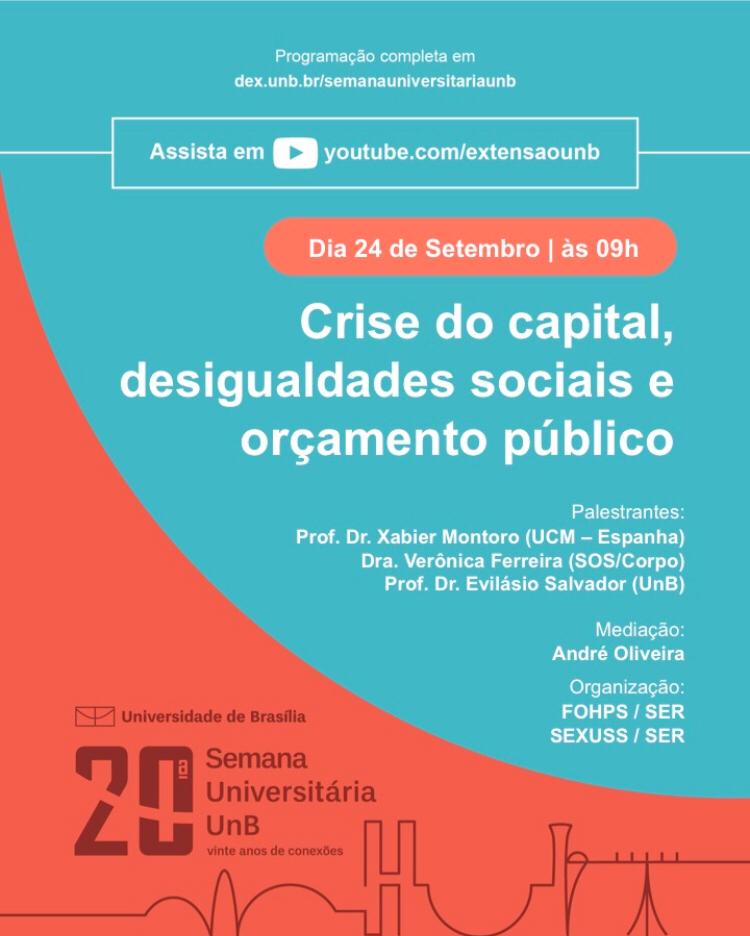 Confira abaixo na íntegra, como foi o debate, que contou ainda com as participações dos professores doutores, Xabier Montoro (UCM/Espanha), Evilásio Salvador (Unb), e mediação de André Oliveira.