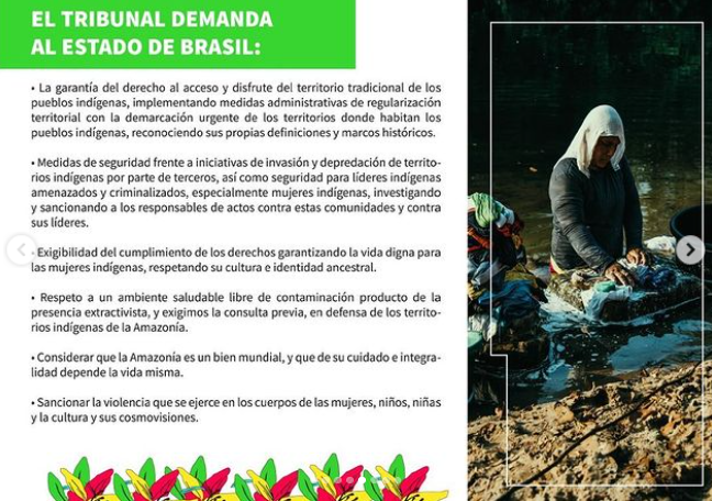 No marco de 8 de março, compartilhamos a sentença do II Tribunal de Justiça e Direitos das Mulheres Panamazônicas que no processo do IX FOSPA se pronunciou sobre as violações dos direitos das mulheres indígenas no Brasil, Colômbia e Peru exigem pronta ação dos Estados.