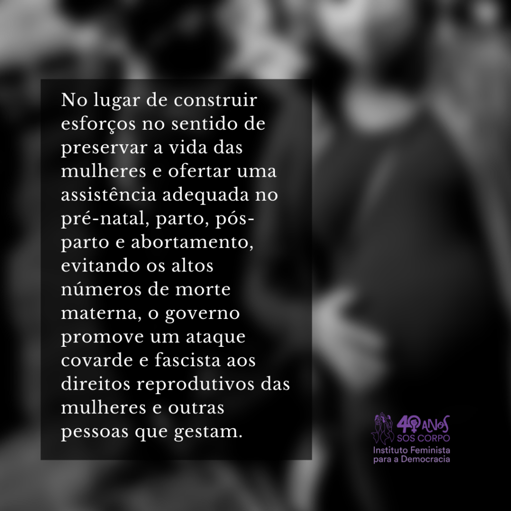 No lugar de construir esforços no sentido de preservar a vida das mulheres e ofertar uma assistência adequada no pré-natal, parto, pós-parto e abortamento, evitando os altos números de morte materna, o que vemos no Brasil é um ataque covarde e fascista aos direitos reprodutivos das mulheres e outras pessoas que gestam. Propostas como a do Senador Eduardo Girão (Podemos-CE), o PL 5435 se utilizava do falso discurso de proteção da gestante e da gestação para nos atacar e impedir a interrupção da gestação nos casos já garantidos por Lei. Proposta que posteriormente foi corroborada pela consulta pública lançada em 5 de abril, pelo General Luiz Eduardo Ramos, alçado a Ministro de Estado chefe da Casa Civil da Presidência da República, sobre um suposto estatuto de defesa do nascituro.
