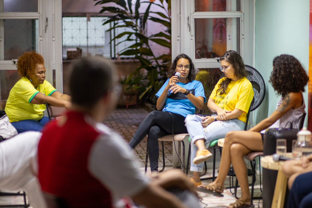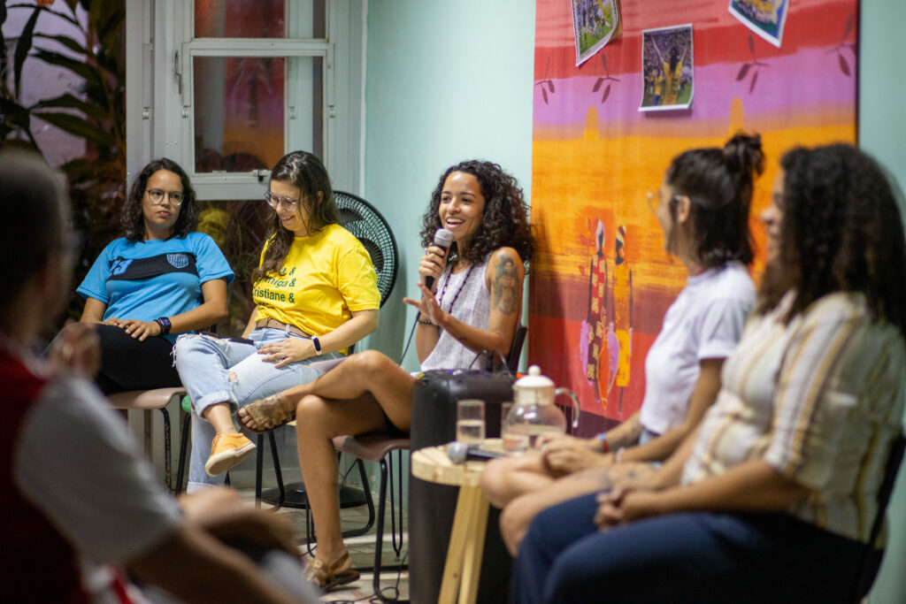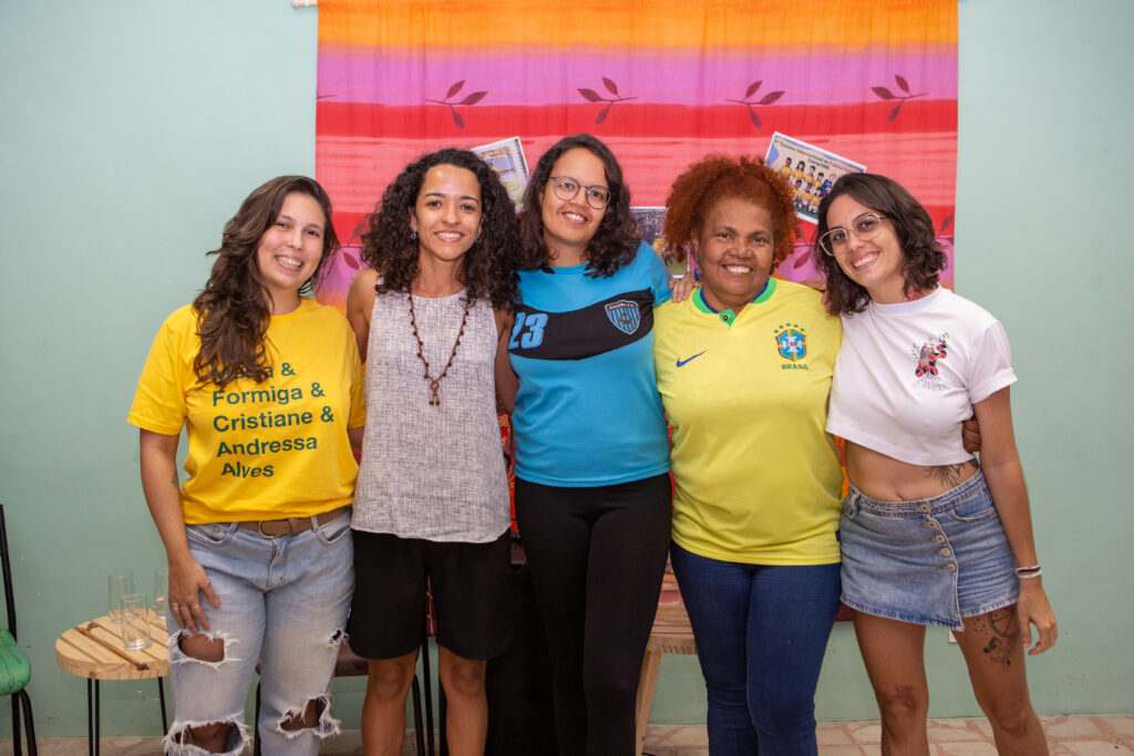 Para a missão de pensar juntas e refletir sobre a cultura que envolve o universo do futebol das mulheres, as desigualdades e os processos de resistência, convidamos para o papo Larissa Brainer, jornalista e ativista do futebol de mulheres; Luiza Lira, do Movimento Coralinas, Coletivo Feminista de torcedoras do Santa Cruz, Rafaela Inácio, do Aurora Futebol Clube e Luiza Carolina, assessora parlamentar e jogadora de futebol amador. A mediação do debate foi da jornalista e comunicadora popular do SOS Corpo, Fran Ribeiro.