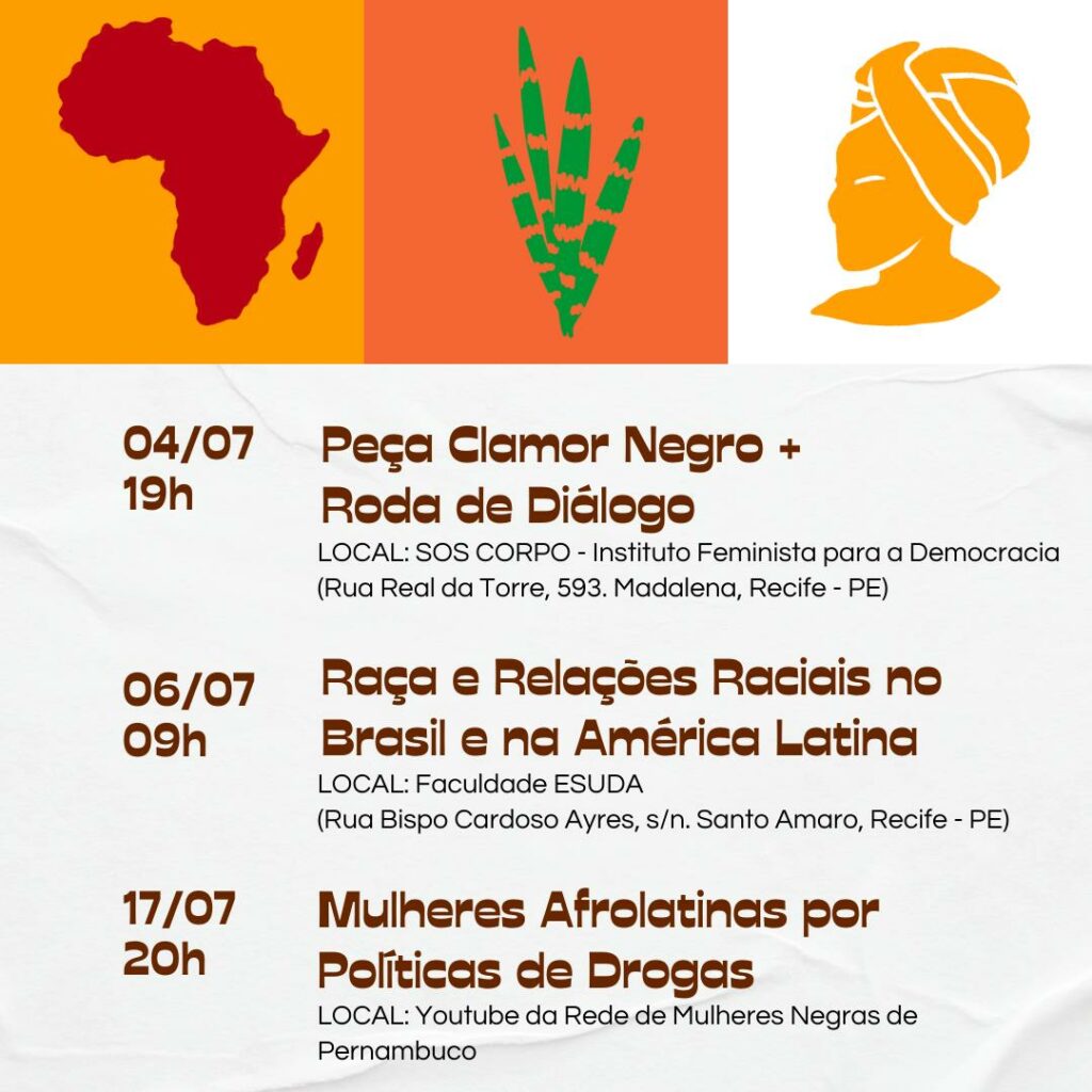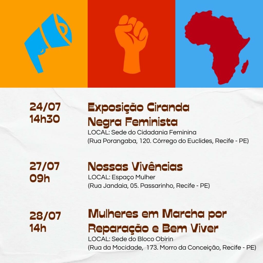 Confira abaixo a programação da 12ª Edição do Julho das Pretas em Pernambuco: