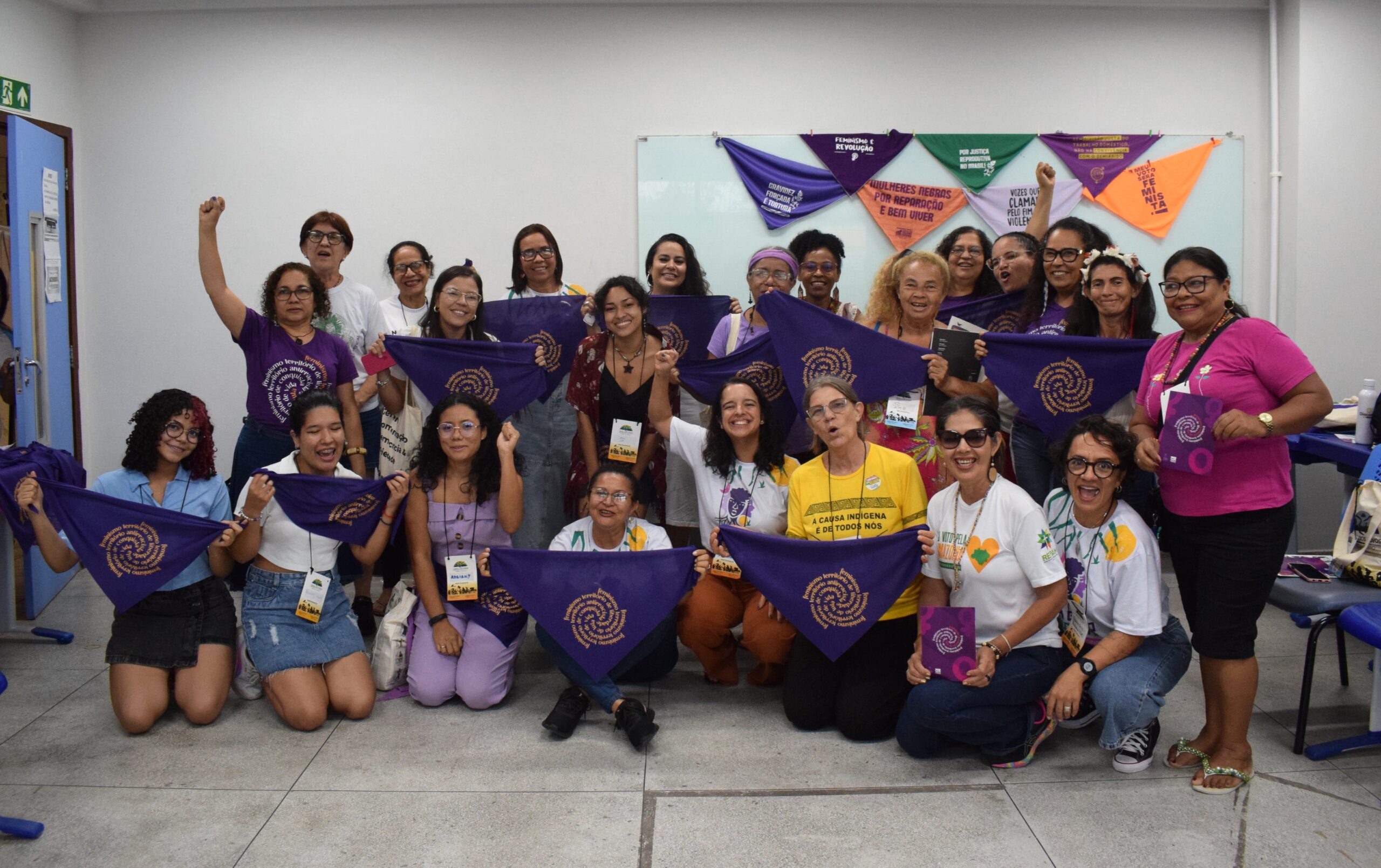 No dia 15 de novembro, cobrimos as ruas de Belém de lilás, distribuindo lenços com as insígnias do Feminismo Território de Vida, convidando as mulheres presentes na Marcha Global pelo Clima a refletirem sobre o feminismo como nosso território.