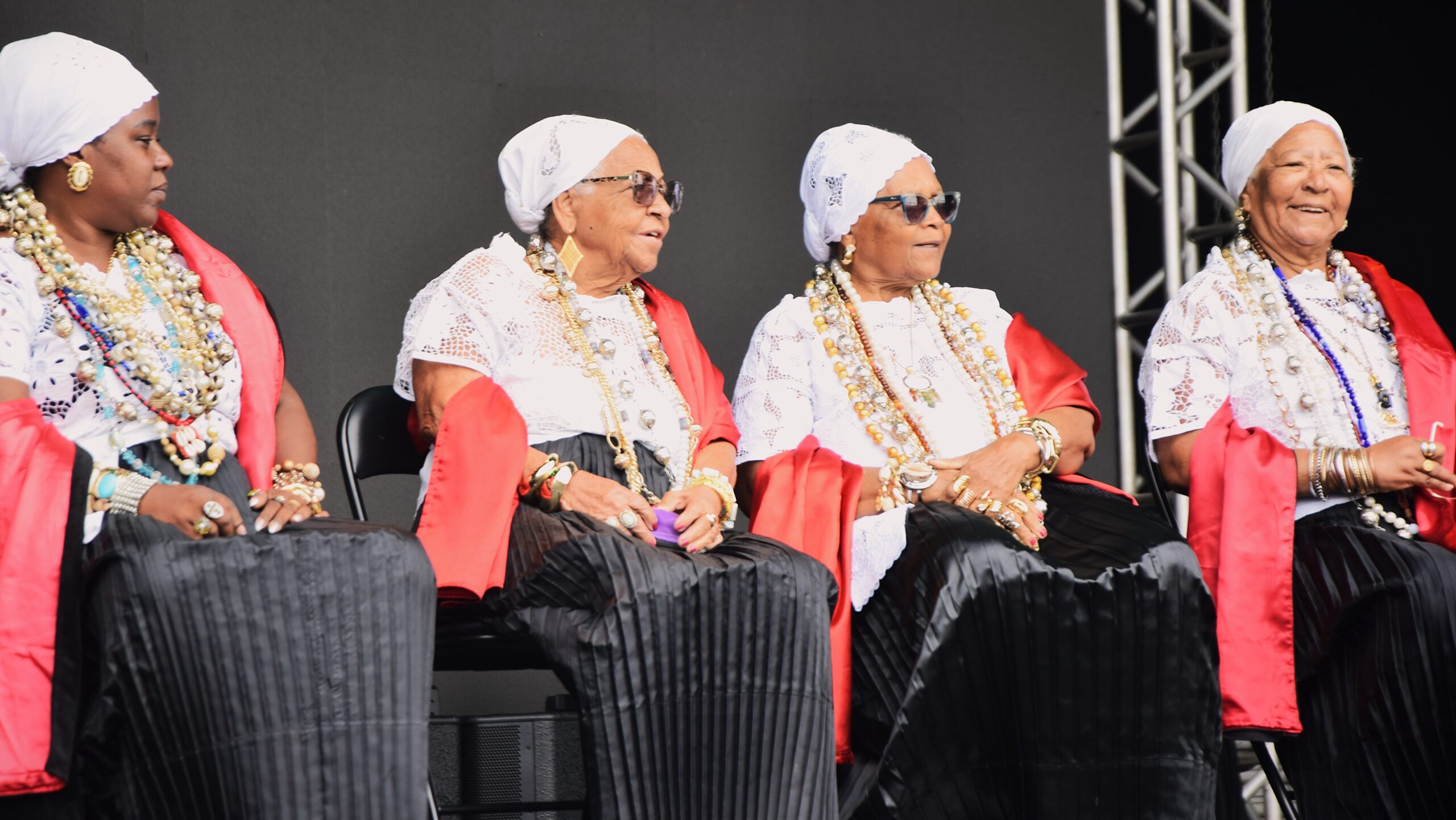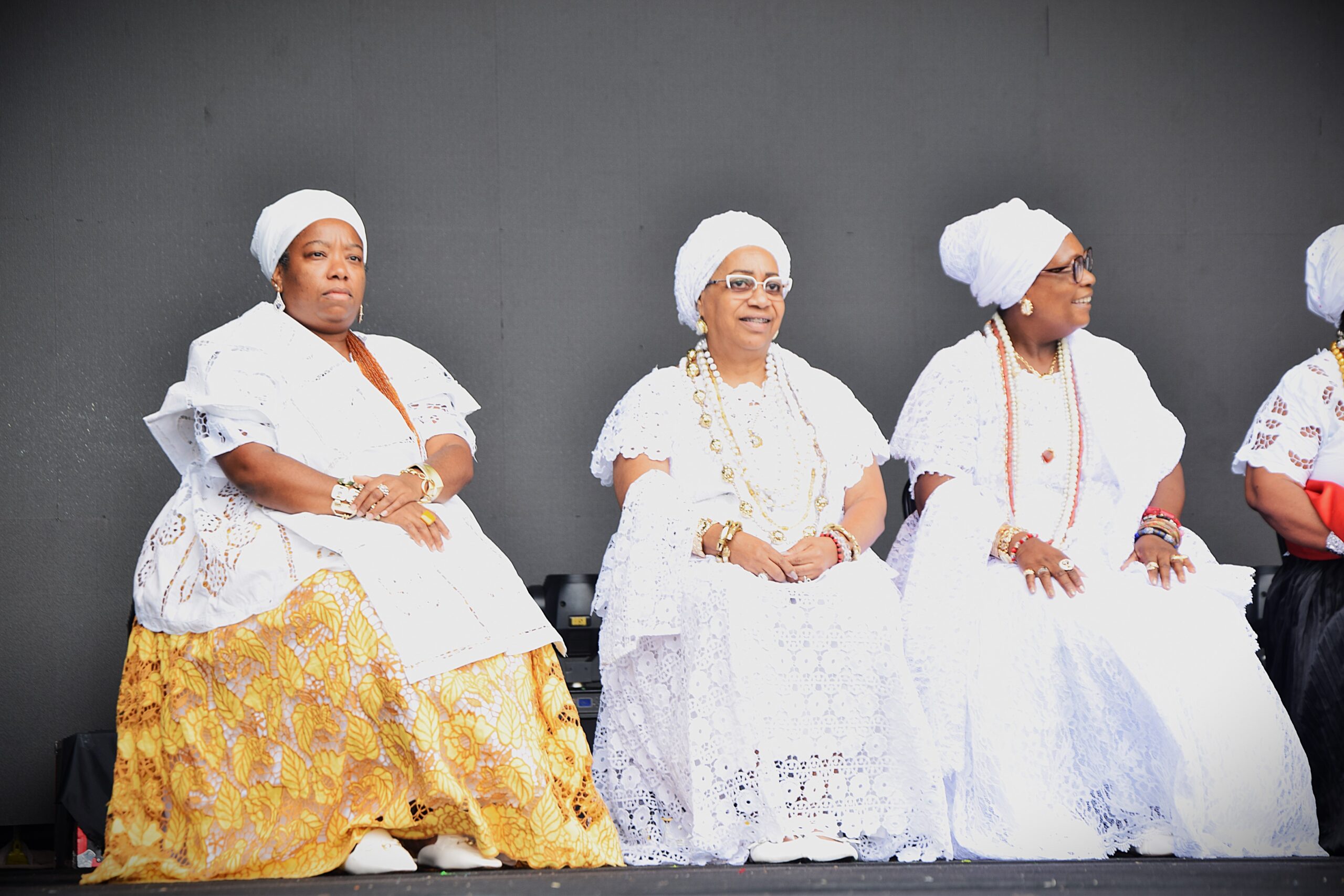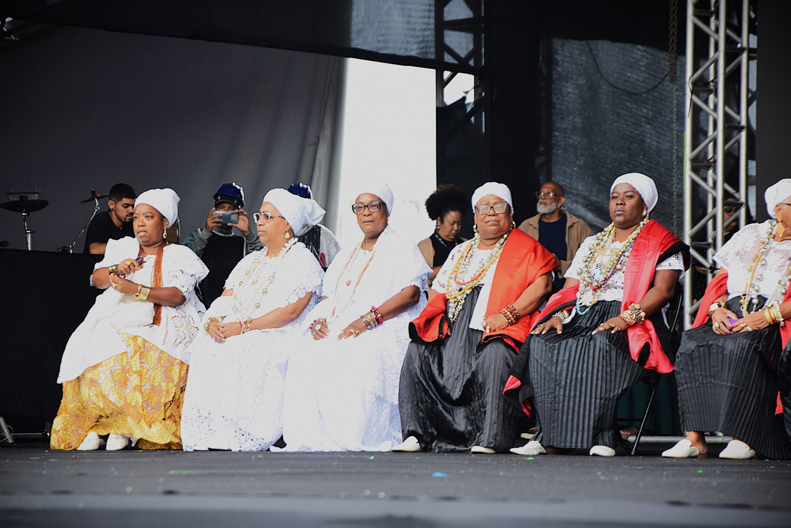 “A escravidão operou de forma a subtrair as humanidades e subjetividades das pessoas negras em todo o mundo, a partir da retirada do direito ao próprio corpo – objetificado e comercializado; e a expropriação de nossos nomes, famílias, culturas e territórios. Tal crime, de lesa humanidade, foi orquestrado com aval, e muitas vezes protagonismo, da igreja católica, responsável pela imposição de um monocultura cristã e consequente violação da liberdade religiosa”, diz um trecho do Manifesto das Mulheres Negras Por Reparação e Bem Viver, lido e lançado na cerimônia de abertura da Marcha, feito com as bênçãos das mulheres de Partido Alto da Irmandade de Nossa Senhora da Boa Morte.
