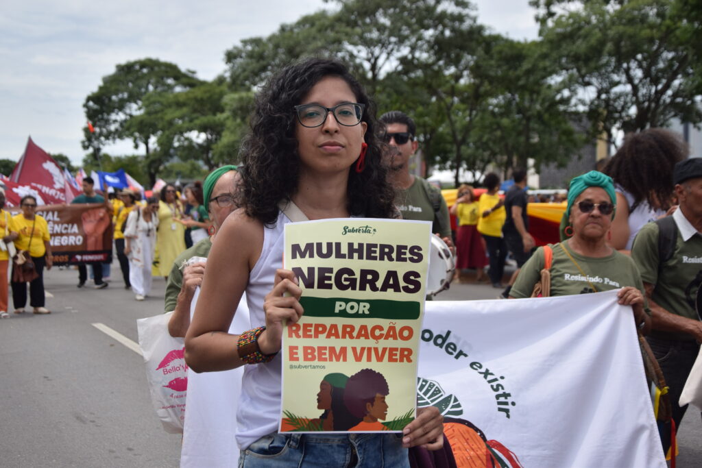 Um dos eixos centrais da Marcha Global das Mulheres Negras, a Reparação foi reivindicada por mulheres de todos os estados do Brasil, além de países da América Latina, Caribe e de África. Ao todo, a Marcha contou com mulheres que vieram representando 40 nações do globo.