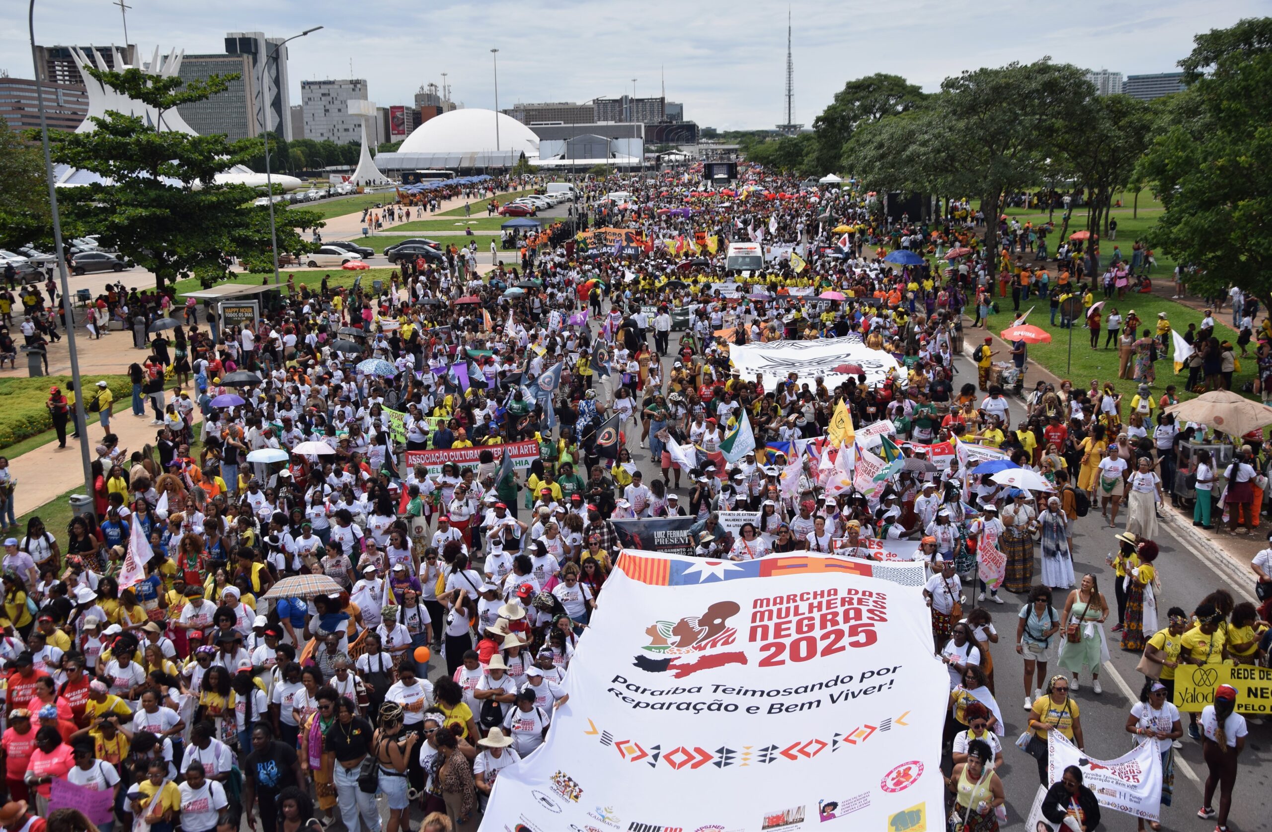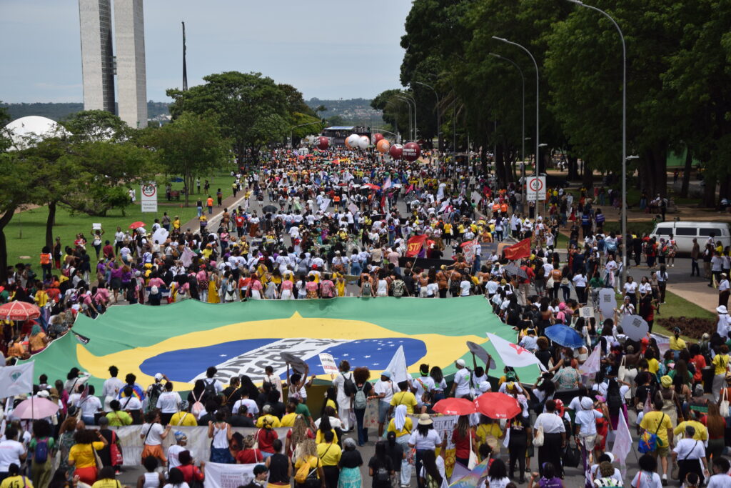 O dia 25 de novembro de 2025 está marcado na história do Brasil. A Marcha de Mulheres Negras ocupou a capital federal novamente após 10 anos para apresentar um diagnóstico sobre a conjuntura, o contexto social, político, econômico e climático no Brasil, na região e no restante do mundo e como o avanço do facismo, a expropriação dos bens públicos e naturais e o crescimento da cultura do ódio têm agravado as condições de vida em diferentes aspectos.