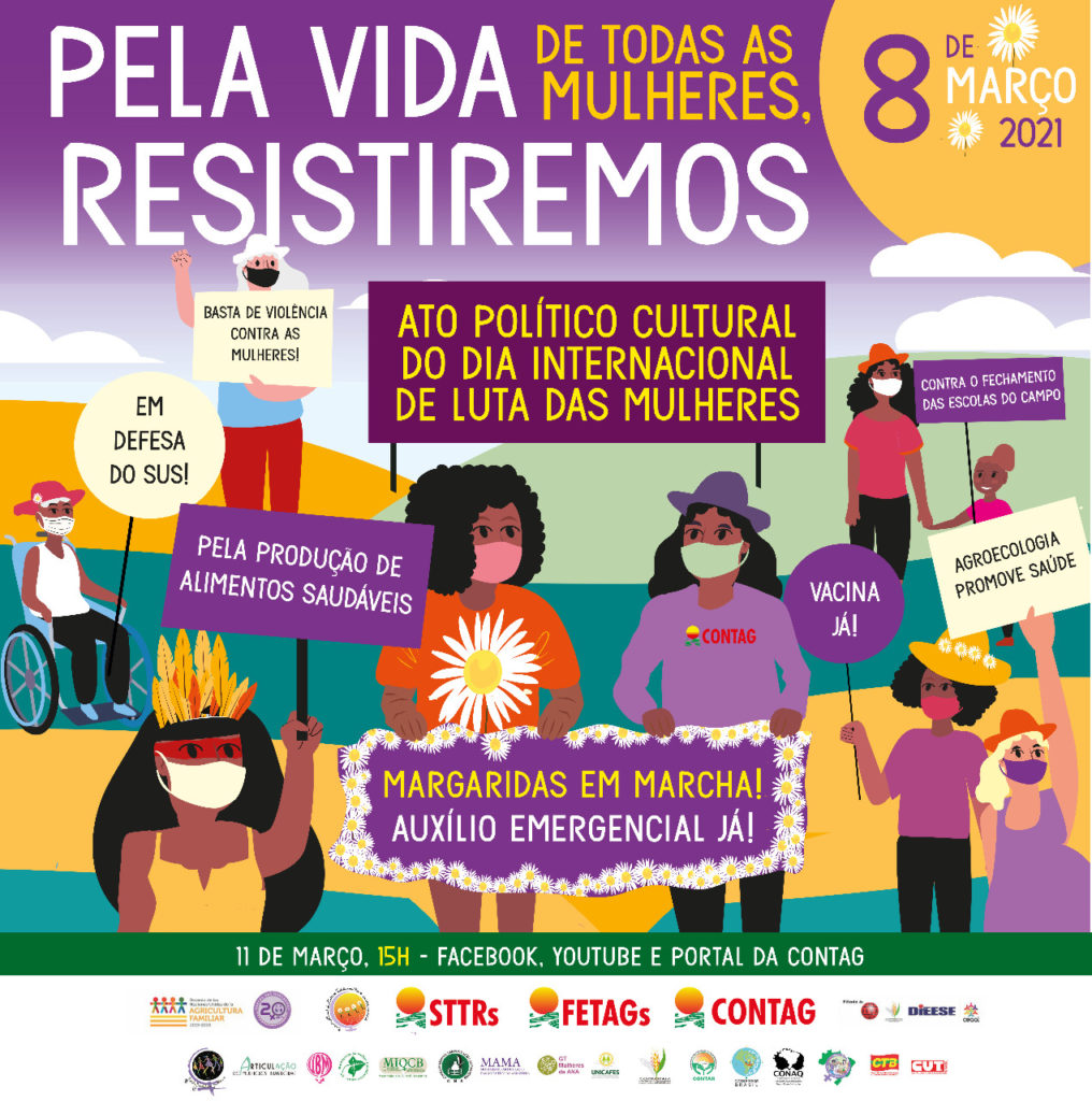 ▶️ O ato virtual, que será transmitido pelo Facebook, YouTube e Portal da CONTAG, contará com mensagens da CONTAG, da Comissão Nacional de Mulheres e das organizações parceiras da Marcha das Margaridas. Também terá intervenções culturais e vídeos que dialogam com a luta das mulheres.