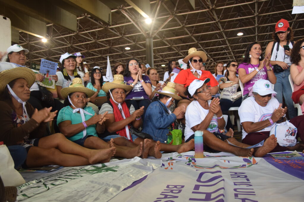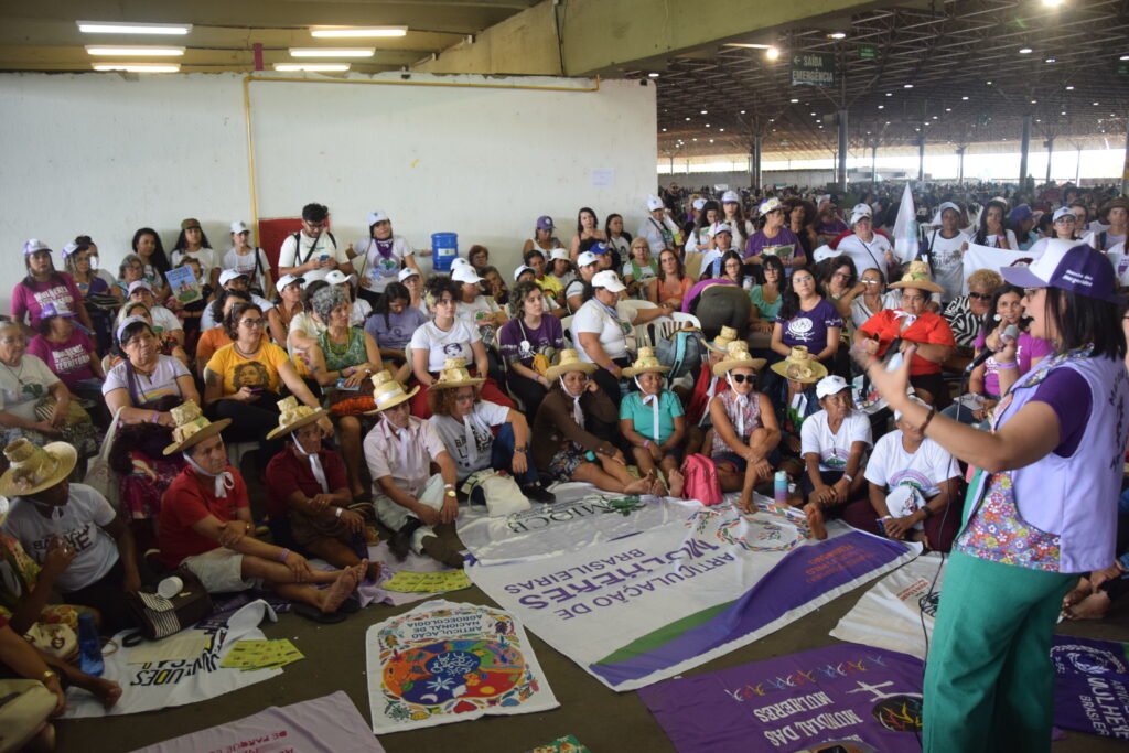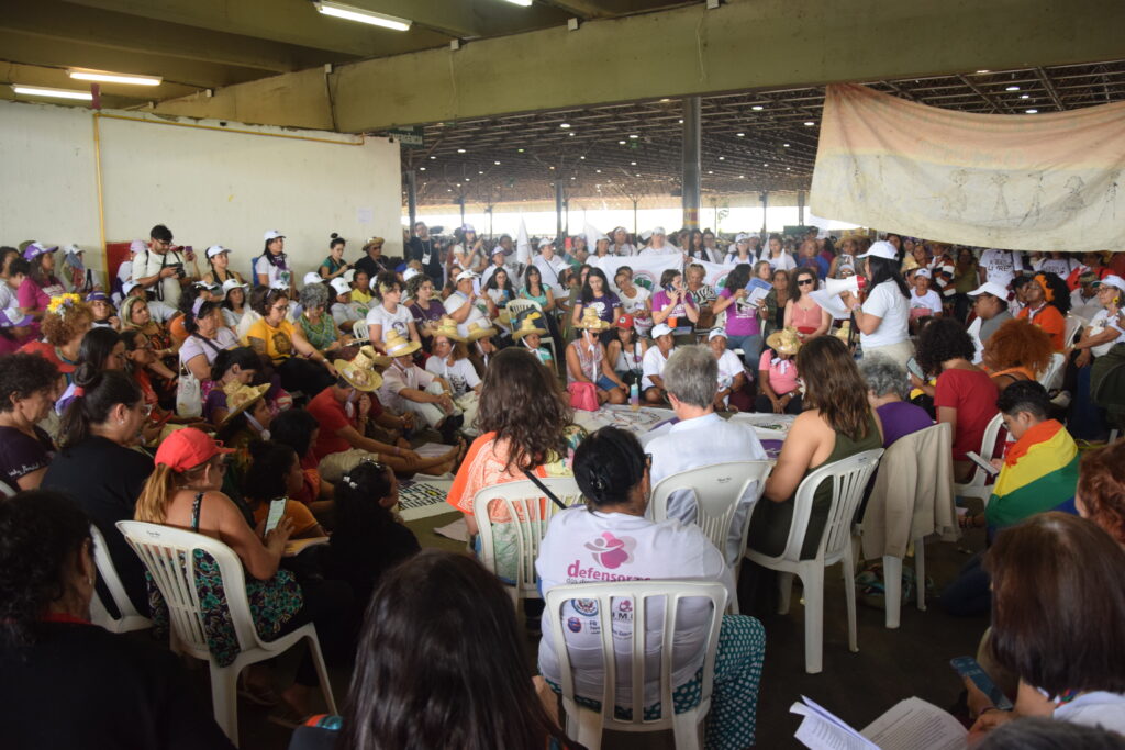 O espaço, que aconteceu na tarde da terça-feira, 15 de agosto, no Pavilhão do Parque da Cidade, em Brasília, foi organizado pelas mulheres da Contag, AMB, MIQCB, MMM, MAB, GT Mulheres da ANA, Polo da Borborema e da MAMA e denunciou os impactos desse modelo de desenvolvimento capitalista, predatório, destruidor da natureza e da vida.