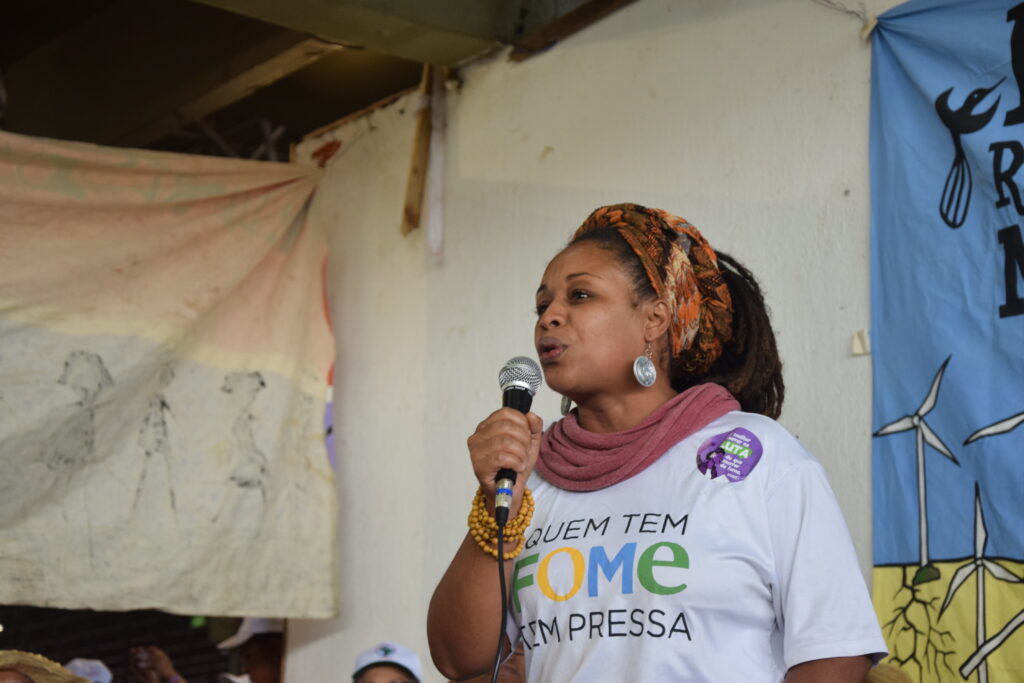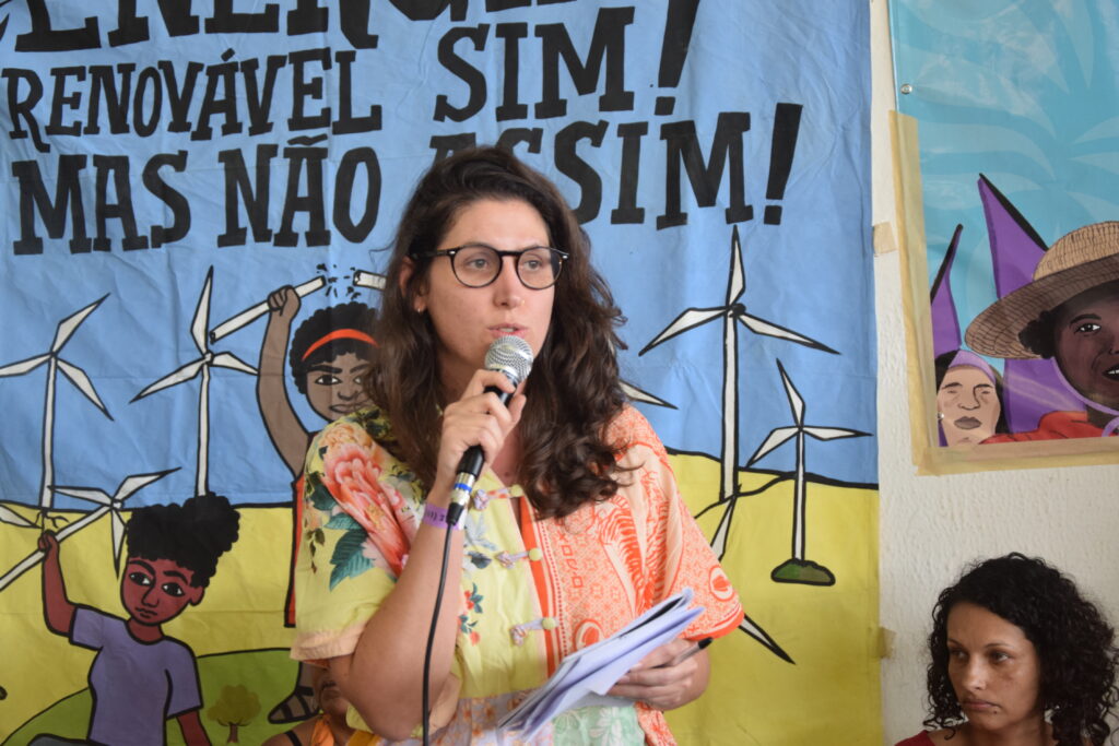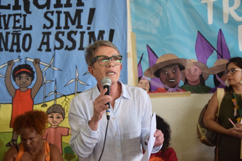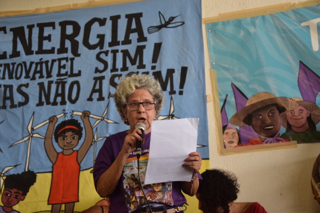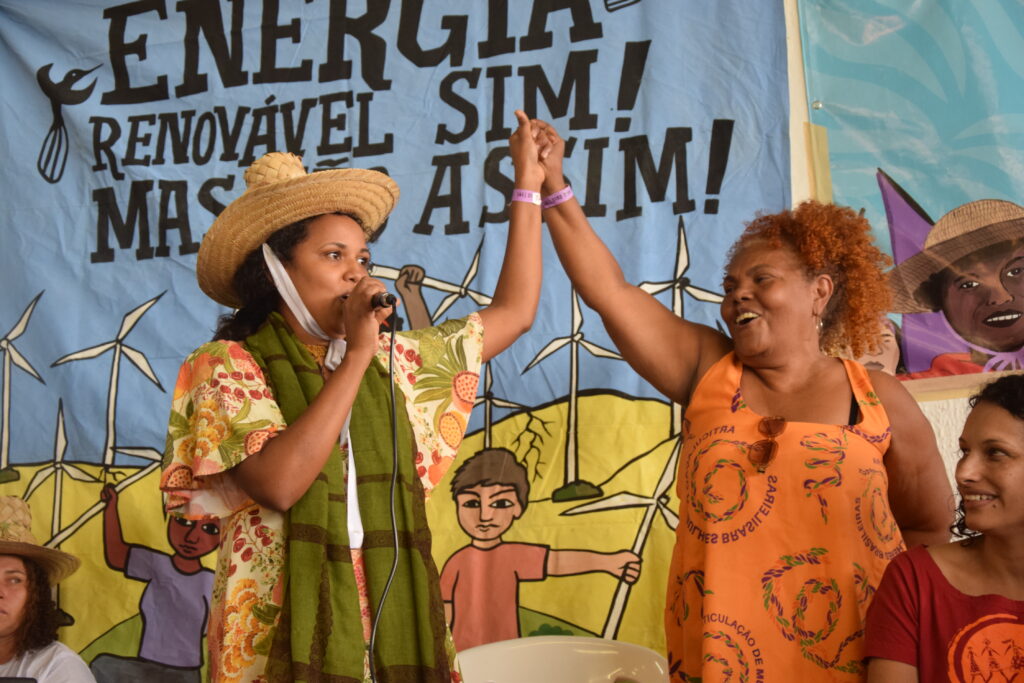 As mulheres denunciaram esse modelo nefasto para a vida humana que contamina o solo, a diversidade, os biomas e nossos corpos! Testemunharam sobre como a água para beber e para cozinhar estão contaminadas, o aumento das doenças respiratórias e das casas rachadas, as vidas afetadas pelos preços abusivos na conta de luz, água e gás!