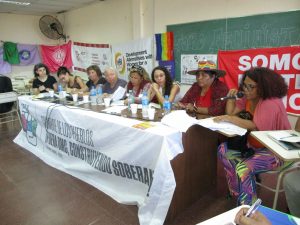 Na mesa que reuniu mulheres sindicalistas do Uruguai, Argentina, Brasil e Equador e apresentaram experiências sobre o mundo do trabalho formal e informal houve acordo sobre construir uma greve de mulheres no 8 de março. “As sindicalistas afirmaram compromisso das centrais sindicais para com a construção por dentro das centrais de cada país de uma greve de pelo menos uma hora no dia 8 de março”, contou Analba Brazão. A indígena, trabalhadora rural e militante da Via Capesina do Peru, Lourdes também afirmou compromisso de articular a Greve de Mulheres, desde as articulação entre campo e cidade estejam acontecendo. Claudia Korol, do movimento feminista popular Abya Yala garantiu que vai investir na construção da greve de mulheres na Assembleia do movimento, pautando também a questão do trabalho doméstico.