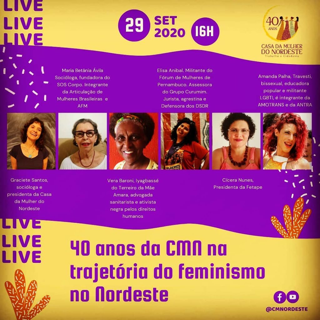 Hoje é dia de celebração para o movimento feminista brasileiro! Painel ao vivo comemora os 40 anos de Casa da Mulher do Nordeste.