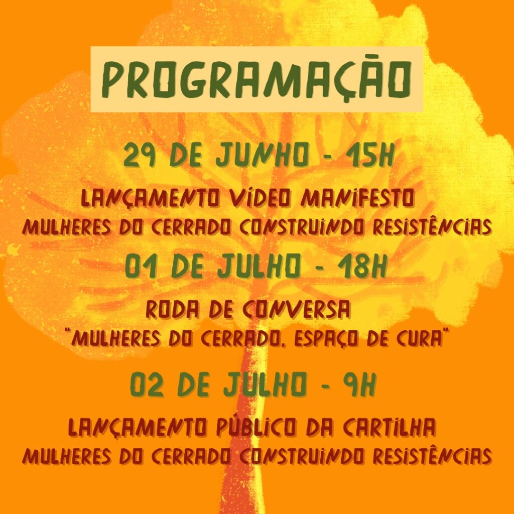 📍 A programação envolve o lançamento de um vídeo-manifesto e também da Cartilha Mulheres do Cerrado, Construindo Resistências, um material formativo que busca fortalecer a derrubada das cercas do capital e o enfrentamento ao machismo, racismo e patriarcado. No dia 01 de julho, será realizada uma roda de conversa que pretende ser um espaço de cura e conexão entre as diversas mulheres cerradenses.