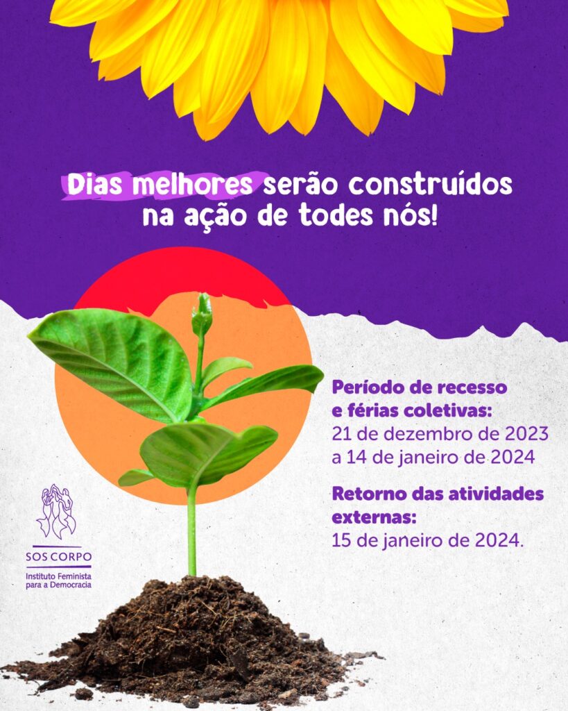 Informamos que a partir dessa quinta-feira, 21 de dezembro de 2023, estamos entrando de recesso. A partir do dia 02 de janeiro estaremos em período de férias coletivas. Nossas atividades presenciais e abertas ao público serão retomadas no dia 15 de janeiro de 2024.