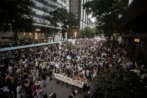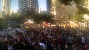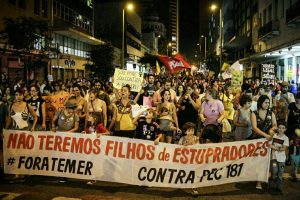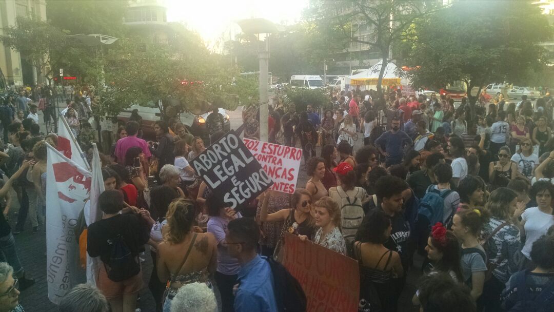 Rio de Janeiro “O corpo é nosso, não da bancada moralista”, é o recado da Frente Estadual pela Legalização do Aborto no Rio de Janeiro. O ato começou às 17h da tarde e as feministas vão marchar rumo a Assembleia Legislativa do Rio de Janeiro (Alerj) contra a ideia de que uma mulher deve ser criminalizada por ter realizado um aborto. As cariocas se concentraram em torno da bandeira da Frente , Contra a Criminalização de Mulheres e Pela Legalização do Aborto. A Cinelândia já ficou pequena para a quantidade de mulheres que gritam juntas FORA TEMER.