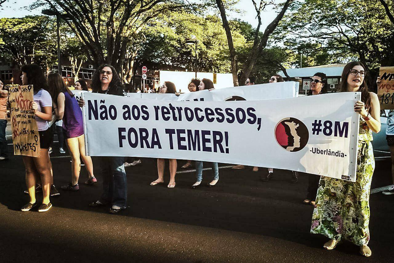 Uberlândia O movimento feminista ganha tanta força também longe das capitais. É isso que acontece quando homens brancos tentam legislar usando o corpo das mulheres como moeda de troca. Em Uberlândia as mulheres estão unidas conosco e juntas somos milhões gritando Fora Temer!