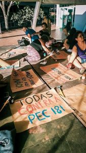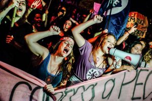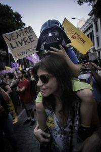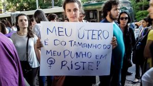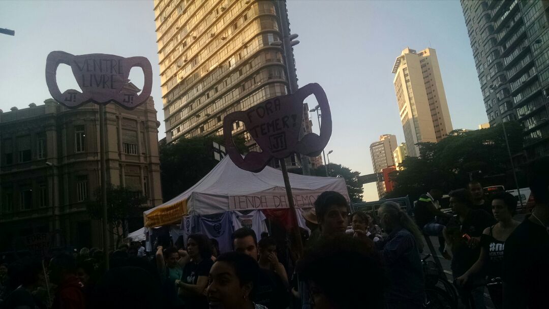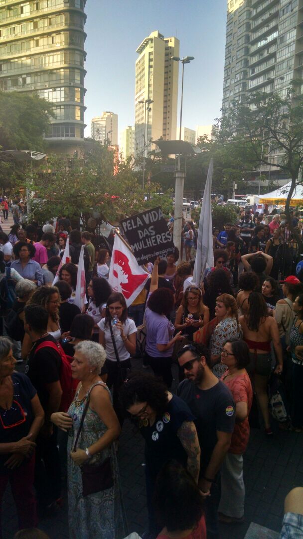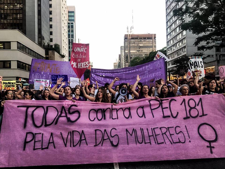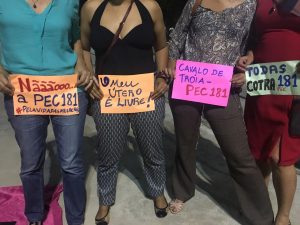 Elas denunciam que o poder legislativo brasileiro está tomado por uma bancada racista, machista, fundamentalista, violadora-de-direitos que se fortalece através de ataques sórdidos à autonomia das mulheres. Há resistência! Queremos ampliar a legalização do aborto, para que as mulheres parem de morrer. Não vamos deixar que criminalizem nossos corpos e retirem nossas vidas cada vez mais!