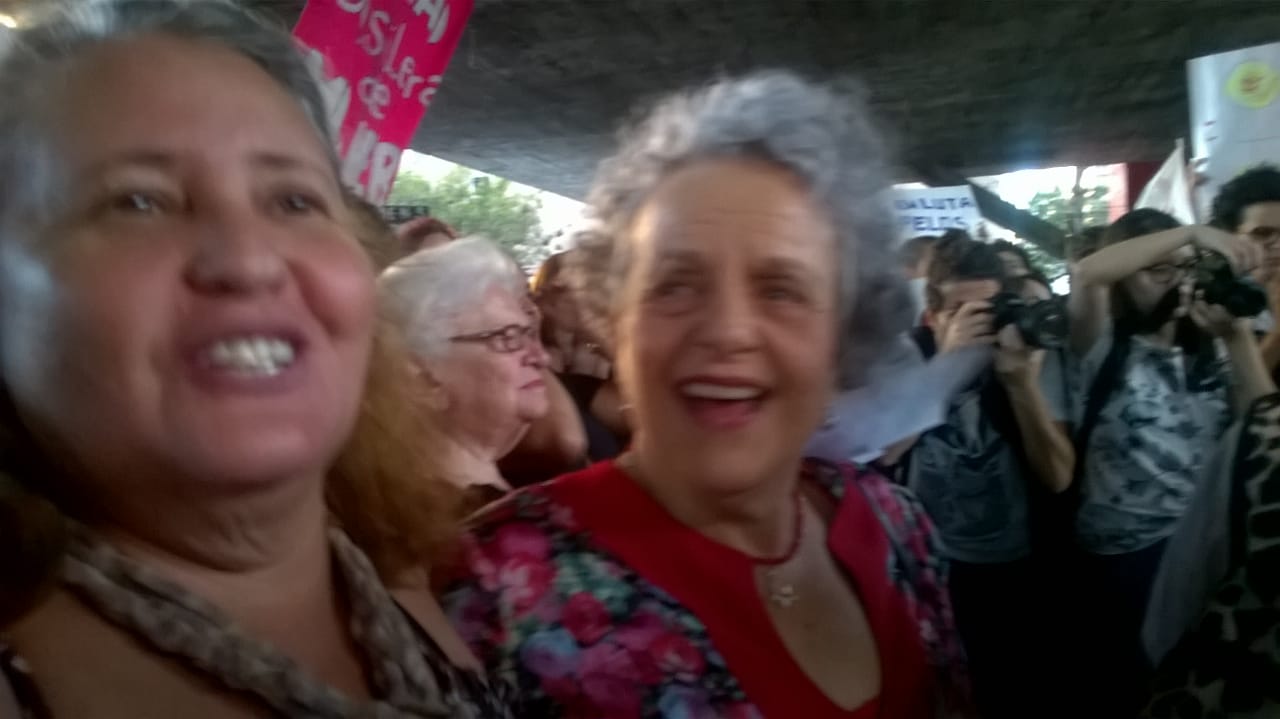 Nossa querida e poderosa representante no Congresso Nacional, deputada Luiza Erundina também estava presente fortalecendo a nossa luta por um Brasil onde nenhuma mulher seja criminalizado por ter realizado um aborto. Outra guerreira histórica e parceria de longa data na luta pela Legalização no Brasil carregou a faixa durante o ato pela Av. Paulista foi a ministra das Mulheres, Eleonora Mennicucci.