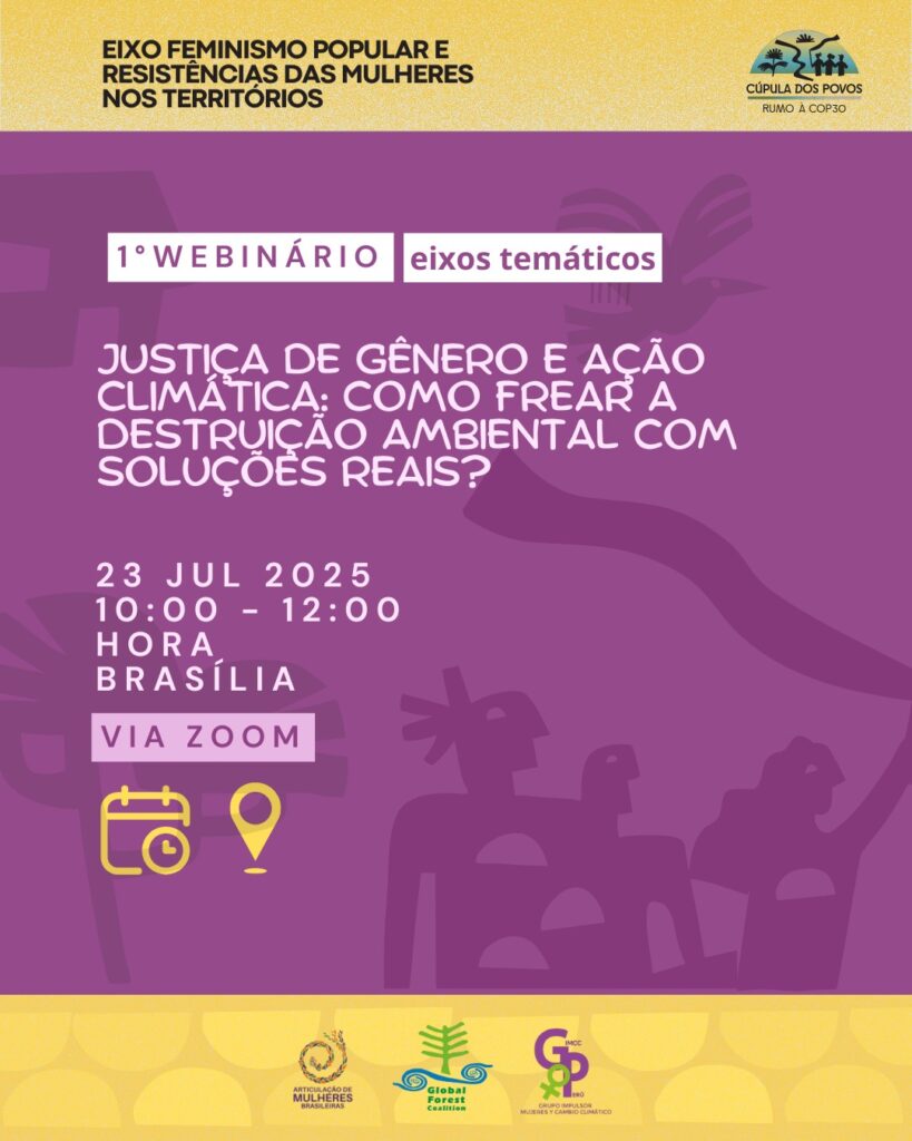 Esse é o primeiro webinário, do o Eixo VI: “Feminismo popular e resistências das mulheres nos territórios”, que faz parte do processo da Cúpula dos Povos rumo à COP30
